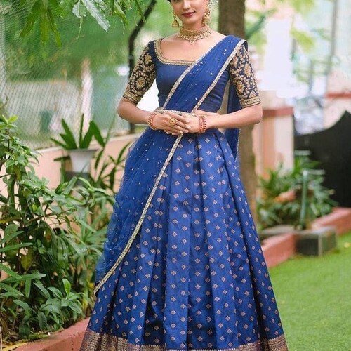 Designer Exclusive Blue Color Pure Kanjivaram Silk Half Saree Etsy India