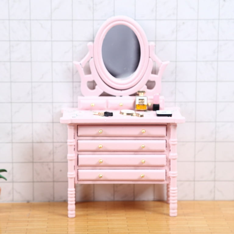 Lhmsgg 1 12 Miniature Dresser Mirror Drawer Design Stable Support Non Fading Free Standing Dressing Table Model For Entertainment Walmart Com